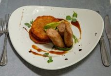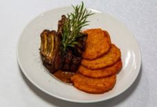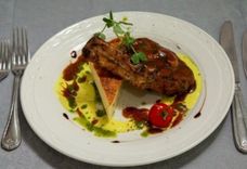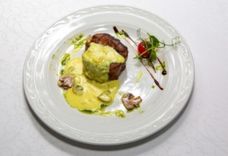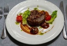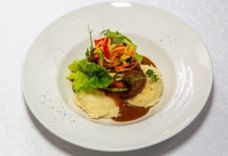 195 г • Говядина вырезка, яйцо перепелиное, гренки