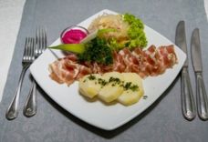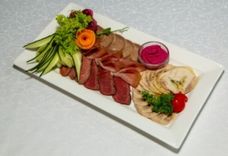 250/100/20/50 г • Свинина сыровяленая, ростбиф, рул яда, язык отварной, свежие овощи, соус хрен