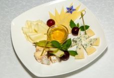 120/50/33 г • Сыр бри, сыр данаблю, сыр грана падано, моцарелла, виноград, груша, мед, мята