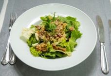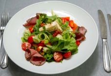 235 г • Вырезка говяжья, заправка лимонная, шампиньоны, салат, сыр, сельдерей, зелень