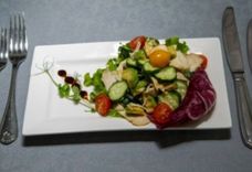 285/3 г • Филе куриное, салат микс, сыр, томаты черри, заправка лимонная, базилик